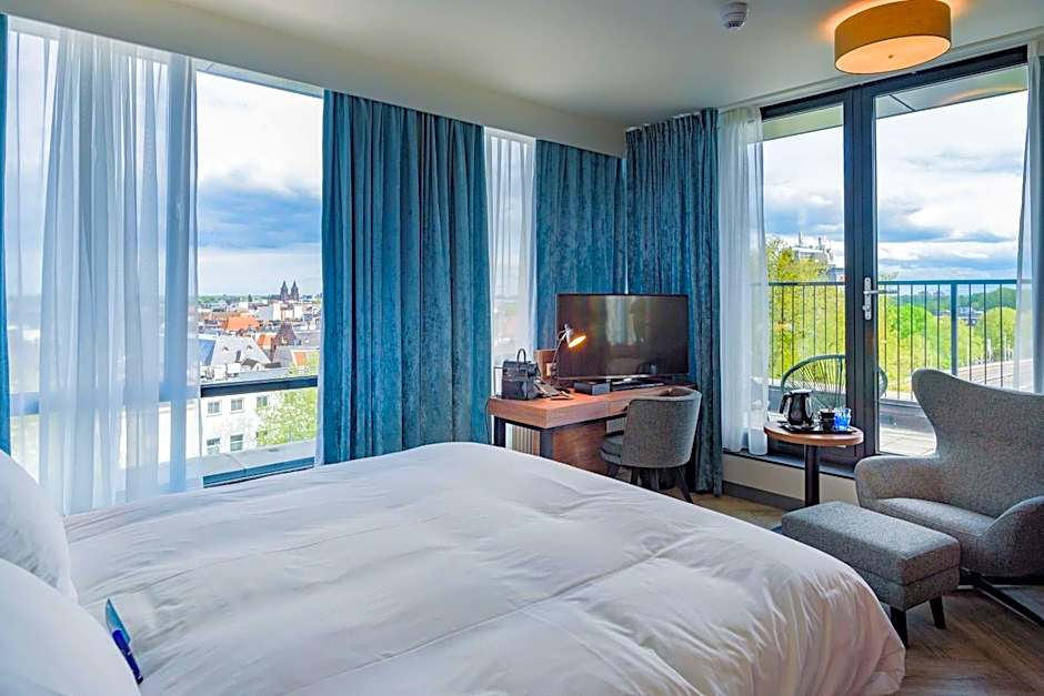 The spacious double room features air conditioning, soundproof walls, as well as a private bathroom boasting a walk-in shower and a bath. The double room has carpeted floors, a seating area with a flat-screen TV, a mini-bar, a tea and coffee maker as well as city views. The unit has 1 bed.